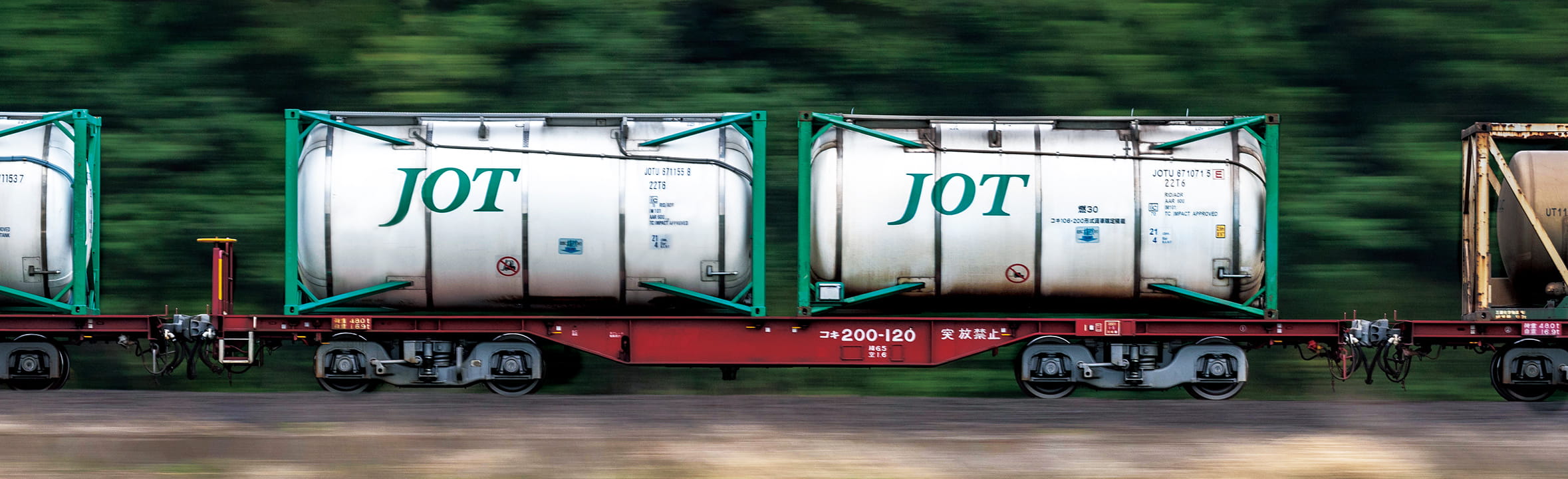 化成品輸送事業では、各種化学製品・食品等の液体・粉粒体を輸送する各種コンテナ(ISOタンクコンテナ等)のリース事業および複合一貫輸送サービス事業を行っています。複合一貫輸送サービス事業では、国内はもとよりアジア11か国での輸送サービスを展開しています。