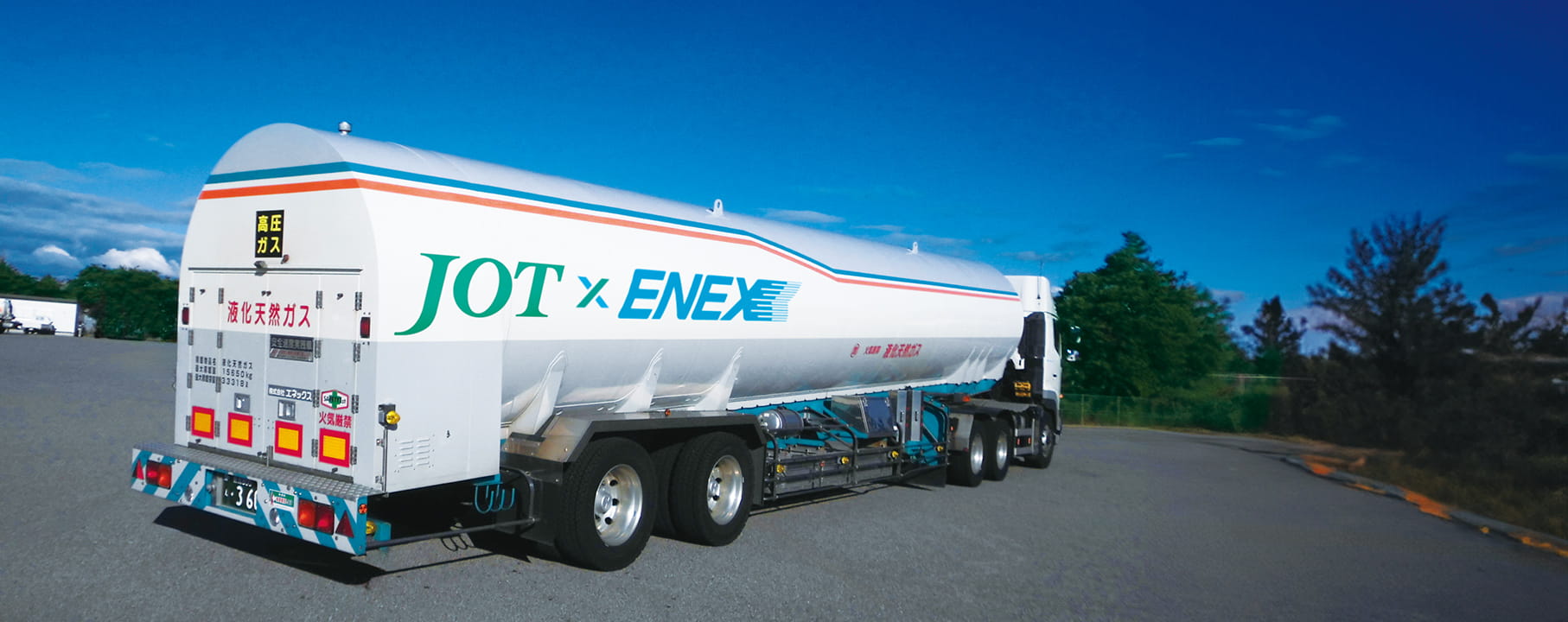 高圧ガス輸送事業では、LNG(液化天然ガス)やLPG(液化石油ガス)をはじめ、水素のほか、液化酸素・液化窒素・液化アンモニア等、多様な高圧ガスのタンクローリー輸送を行っています。